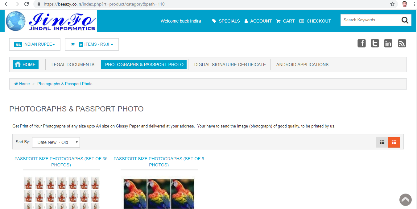 Online Purchasing:Passport /Other Photos Digital August 1, 2019 dpjadminLeave a Comment on Online Purchasing:Passport /Other Photos Visit : beeazy.co.in for online purchase/get print of Passport size, Other Size Photographs.